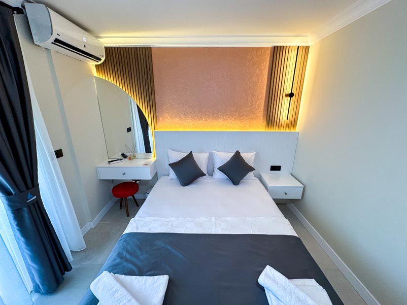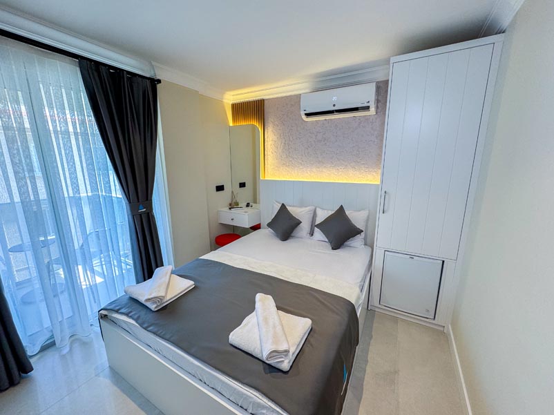 Çiftler veya tek başına daha geniş bir yatakta uyumayı tercih eden misafirlerimiz için ideal olan bu oda tipimizde bir adet çift kişilik yatak bulunmaktadır. Maksimum 2 kişi konaklayabilir ve odalarımızın her biri 15 metrekare genişliğindedir. Toplamda 11 adet bulunan bu odalar, şık ve modern dekorasyonu ile dikkat çeker. Rahat ve huzurlu bir konaklama deneyimi sunmak amacıyla tasarlanmış olan bu odalarımızda ücretsiz Wi-Fi, düz ekran TV, klima ve minibar gibi olanaklar bulunmaktadır. Misafirlerimiz, burada rahat ve keyifli bir zaman geçirebilirler.